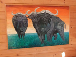 Im Bereich des Malens widmet er sich der Landschaftsmalerei seiner Heimatumgebung, dem Schloss Hohenprießnitz und verstärkt afrikanischen Motiven, wie Tieren, Natur und Porträts |