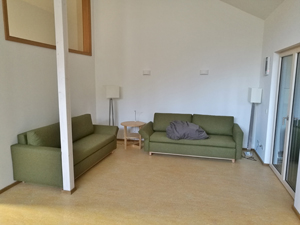 ist für 4 Personen in zwei (Sofa-Doppel-) Betten in einem großen Raum ausgelegt